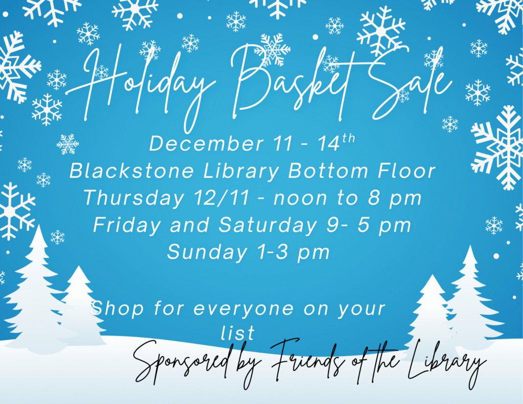 If you have a question for the Friends, please email us at friends@blackstonelibrary.org. Like us on Facebook!